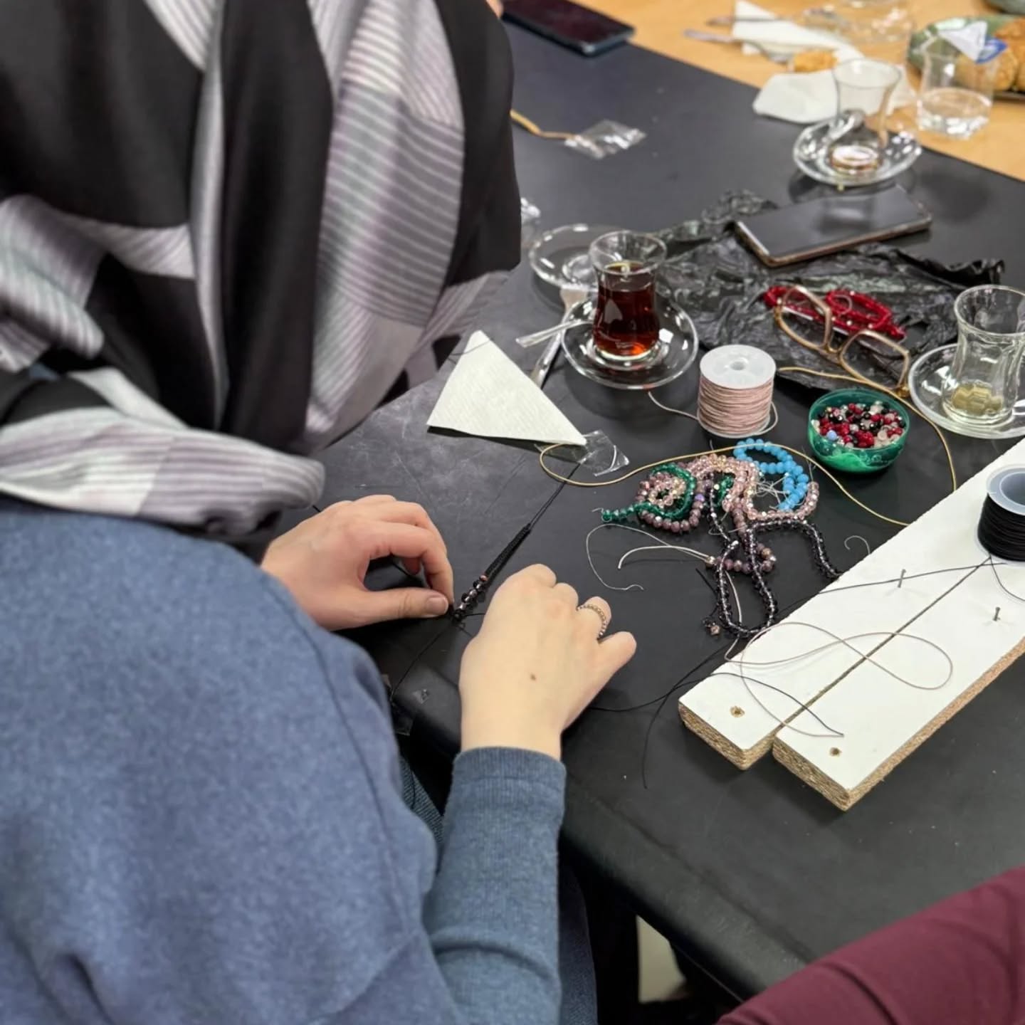 Workshop etkinliğinde bir araya gelerek el emeğiyle hazırladıkları bileklikleri, Gazze’ye umut olmak için özveri ile hazırladılar