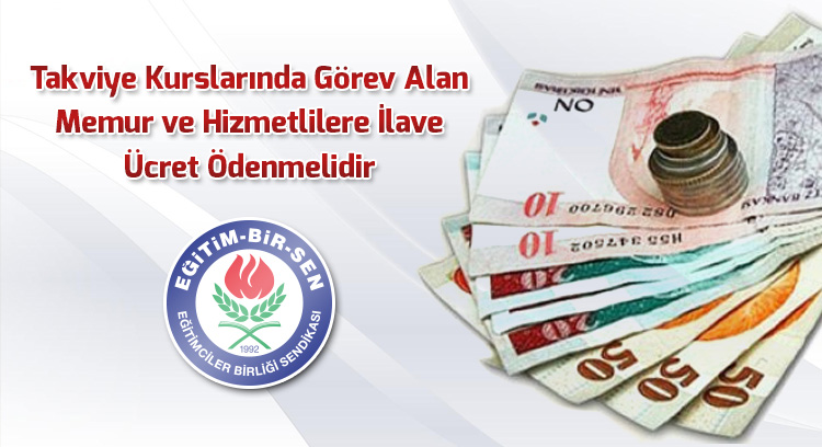 Eğitim-Bir-Sen olarak, halk eğitim merkezleri ve okullarda ders saatleri sonrasında ve hafta sonları düzenlenen takviye kurslarında görev alan memur ve hizmetlilere, bu çalışmalarının karşılığı olarak bütçe kanunu eki (K) cetvelinde öngörülen fazla çalışma ücretinin haricinde ek ders benzeri ilave bir ücret ödenmesi hususunda gerekli düzenlemelerin gerçekleştirilmesini talep ediyoruz.